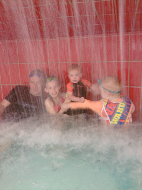 And the wave pool with the large ball that kids tried to climb on and hold on tight while it rolled around in the water, Grace managed to get up on it a few times here she is.....lots and lots of fun and tired out kids at the end. Oh and the coffee was pretty good too.